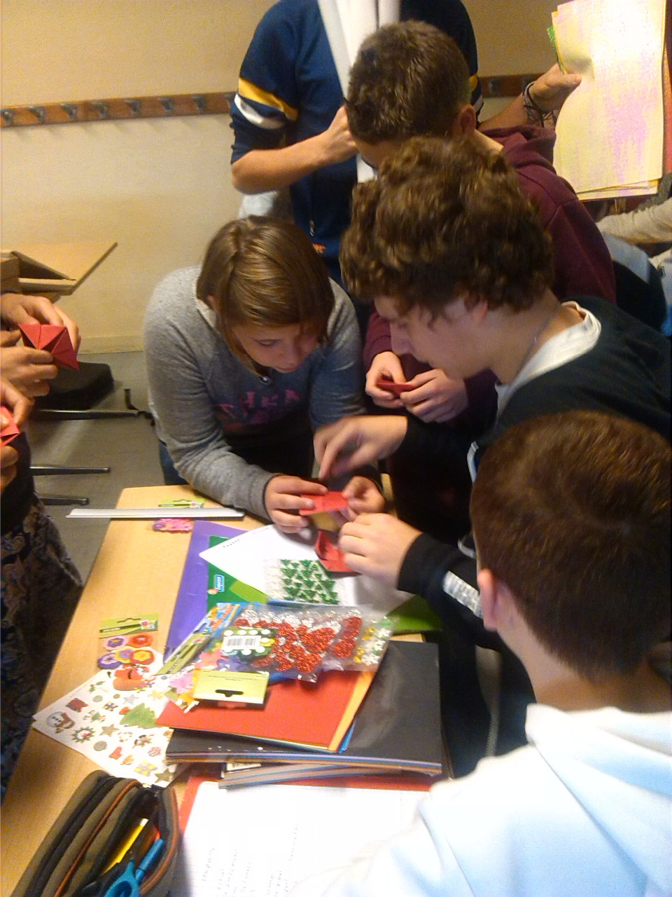 Durant plusieurs semaines, nous avons vu des élèves travailler pour l'évènement du mois de décembre, (soit Noël) ces derniers ont donc réalisé des étiquettes pour les cadeaux ainsi que différents modèles de boules de Noël.